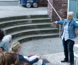 Die Zeit und wechselnden Orte (die bevorzugt an den üblichen Einkaufswegen und überwiegend in Tempelhof-Schöneberg und Steglitz-Zehlendorf liegen) finden Sie unter AKTUELLES. Einige Termine finden gemeinsam mit der Erzählerin Karin Warnken aus Brandenburg und dem Musiker Olaf Garbow aus Berlin statt.